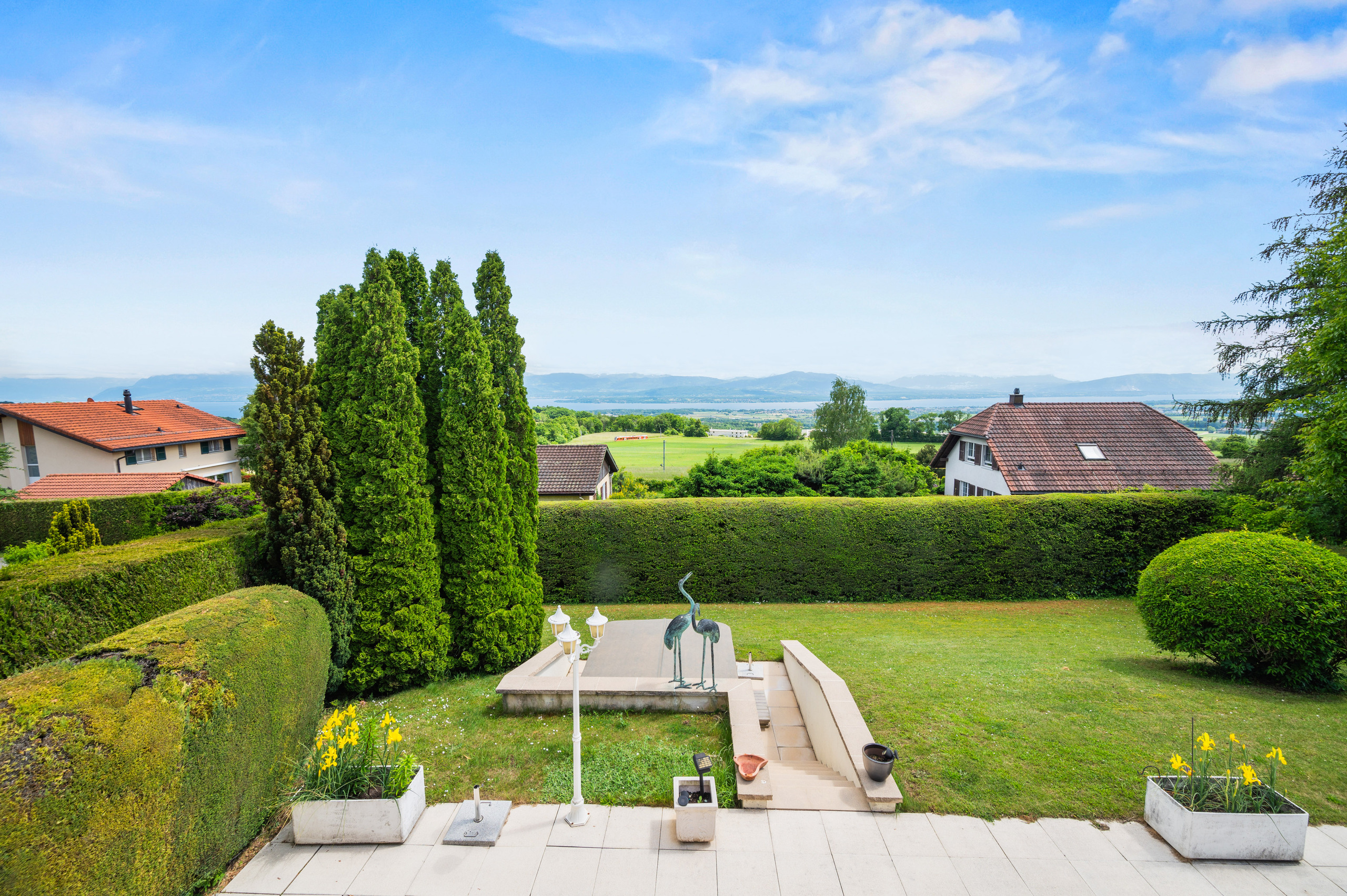 a spectacular panorama: the Alps, the lake, nature as far as the eye can see, with a jacuzzi to enjoy this exceptional setting. This residence offers a peaceful living environment, close to local amenities and transport links to Geneva. It represents a rare opportunity to acquire a property combining traditional aesthetics and modern comfort