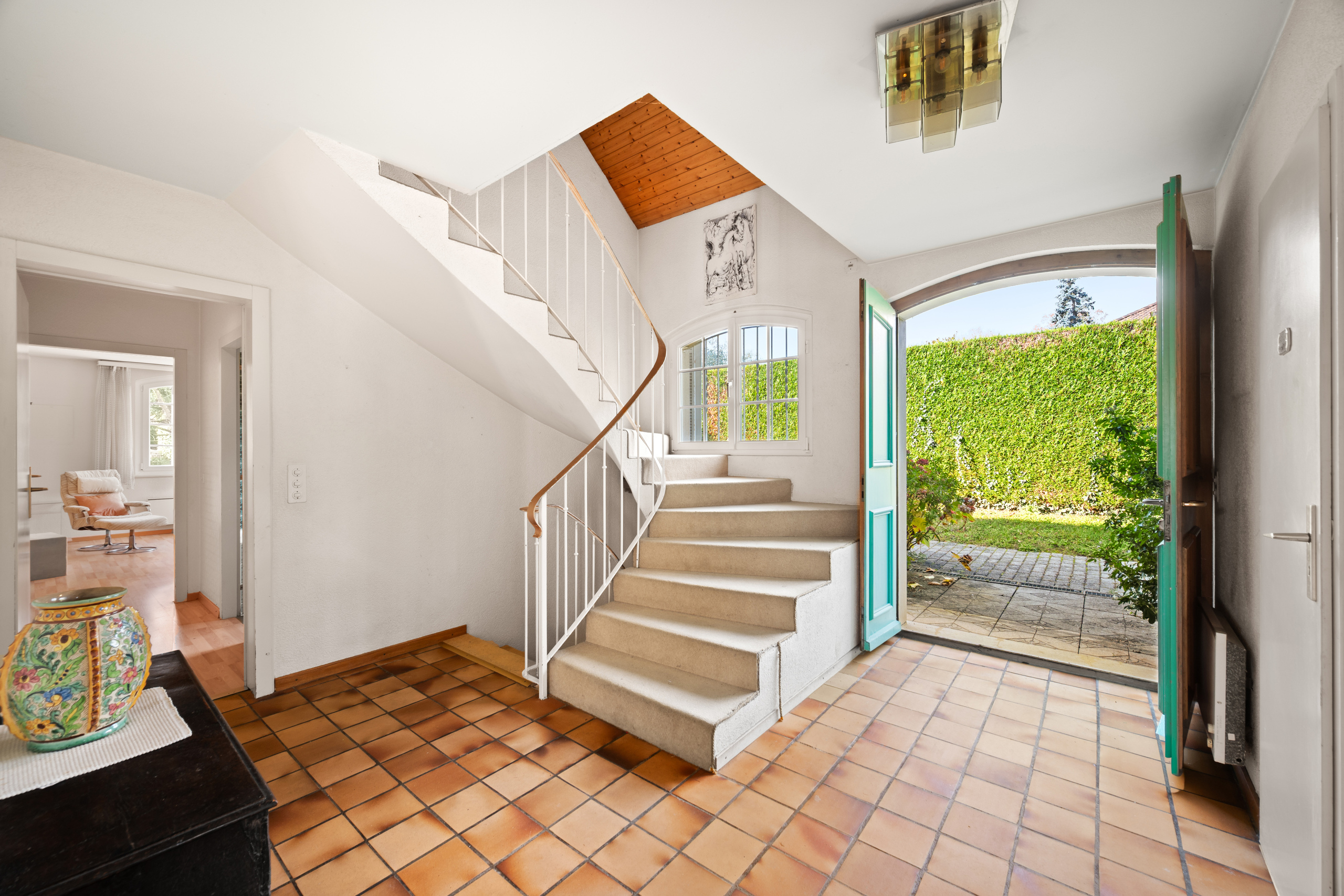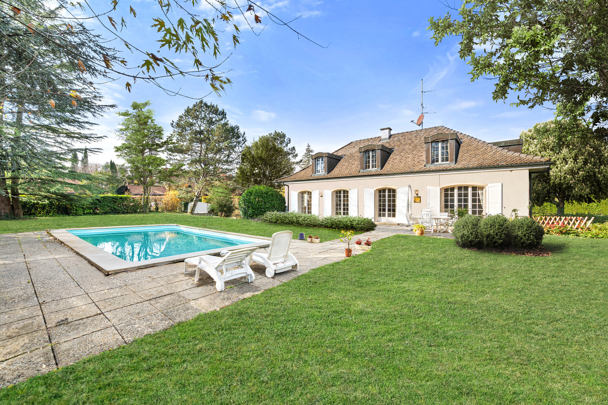 Cette belle propriété se trouve dans un quartier résidentiel paisible et familial de la très prisée commune de Mies, au cœur de la Terre Sainte. Son emplacement est idéal pour une famille avec, à proximité immédiate, les différentes écoles internationales, l'accès à l'autoroute, ainsi qu’à Genève et son aéroport. Edifiée en 1975, la maison se caractérise par ses volumes généreux et une belle luminosité. Parfaitement entretenue au fil des années, elle nécessite aujourd’hui des travaux de rafraichissement pour être remise au goût du jour. La maison dispose d'une surface habitable de 250 m² organisée sur 3 niveaux. Elle offre 6.5 pièces dont 4 chambres, 4 salles de bain et un bureau. Le rez-inférieur représente une belle surface utile supplémentaire avec 2 pièces polyvalentes, une buanderie et une cave. La parcelle de 2177 m2 exposée sud-est est entièrement clôturée. Elle reçoit un jardin