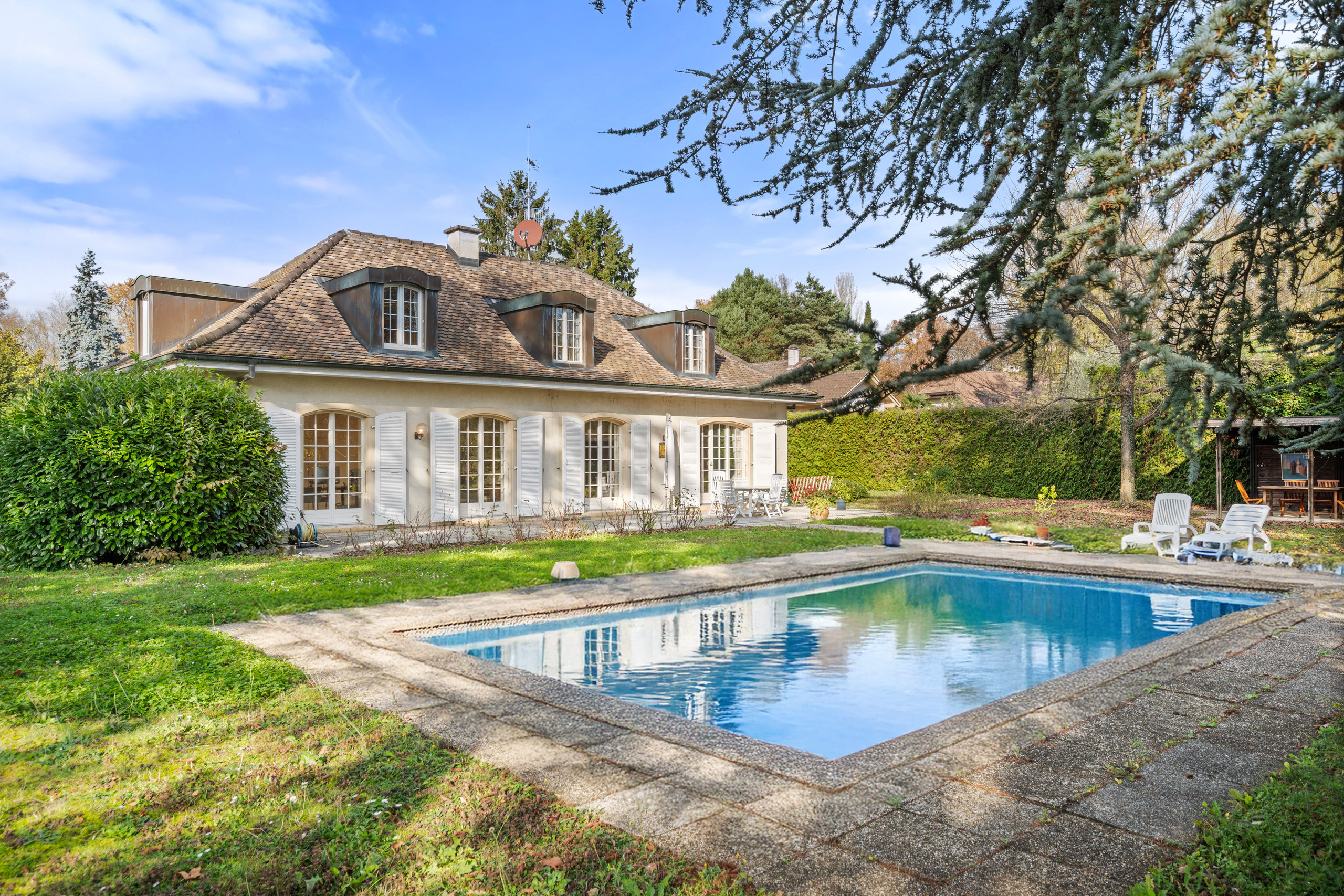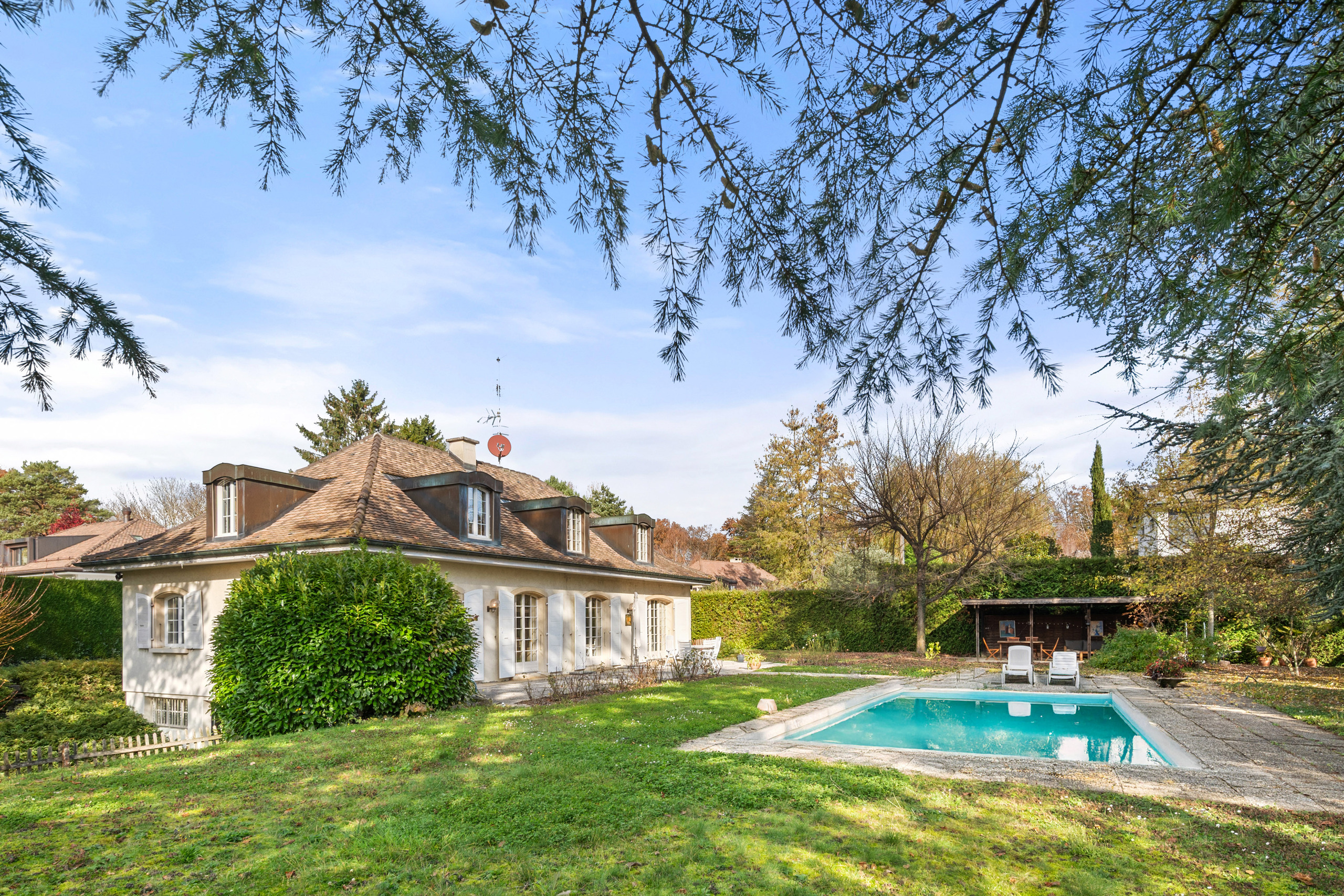 joliment arboré, parfaitement à l’abri des regards avec une terrasse, une piscine et un pool house.