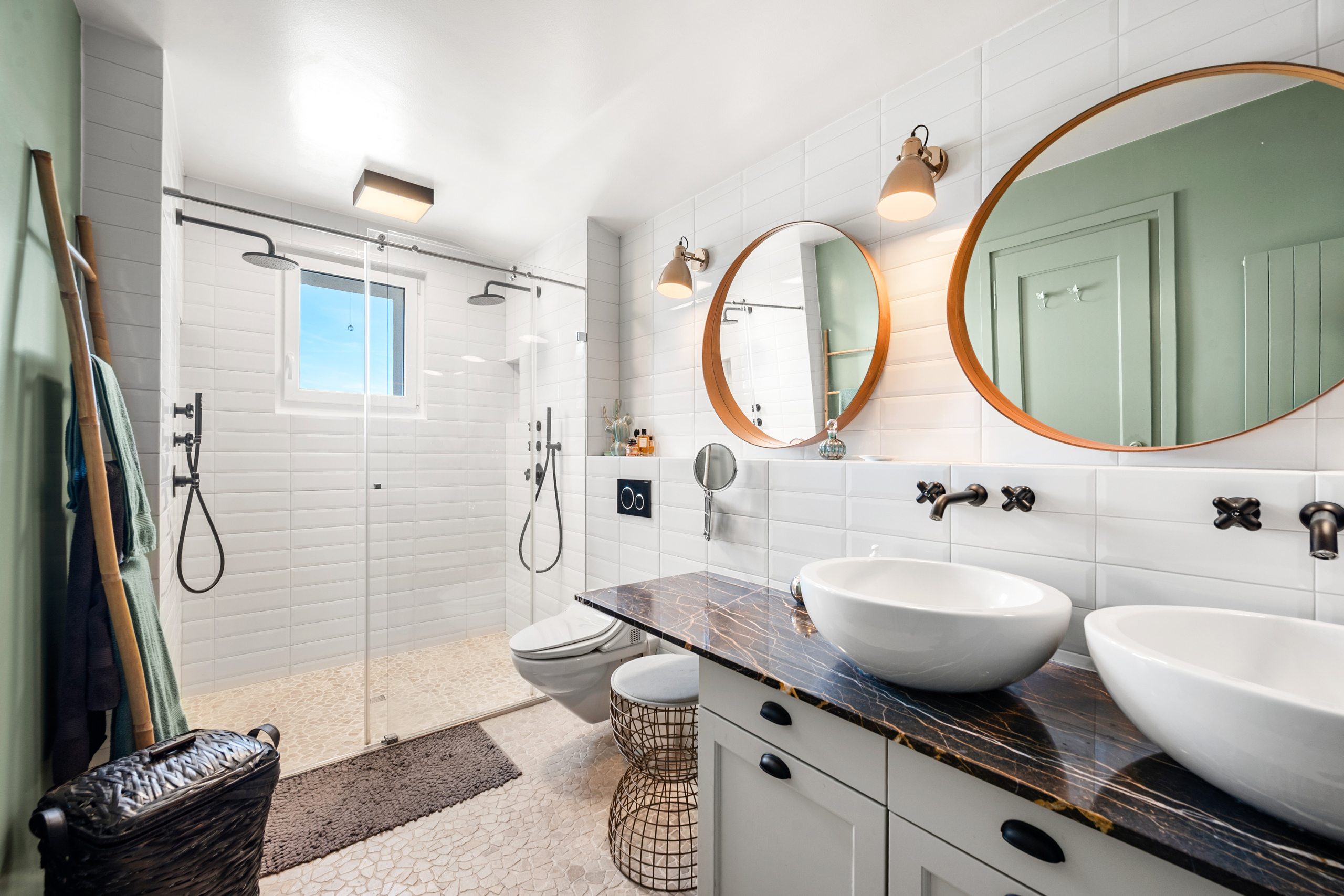 Développant près de 700 m² habitables, la maison est organisée sur 3 niveaux et propose 7 chambres et 5 salles de bains.