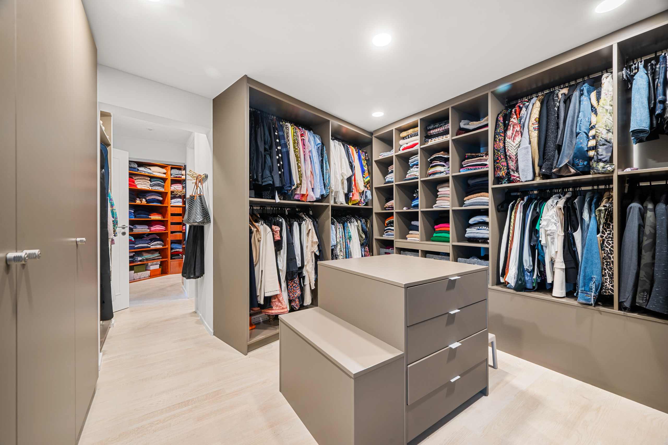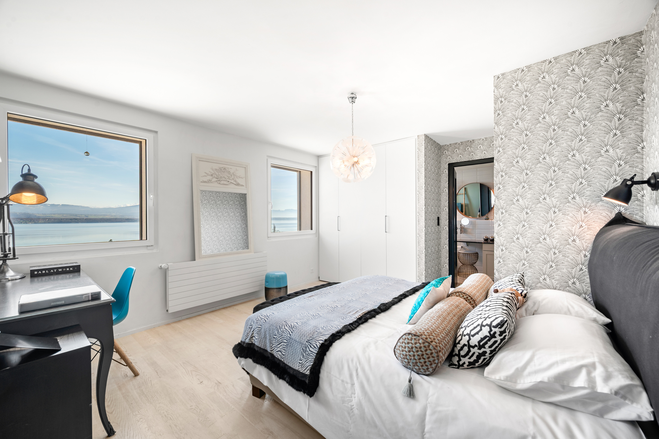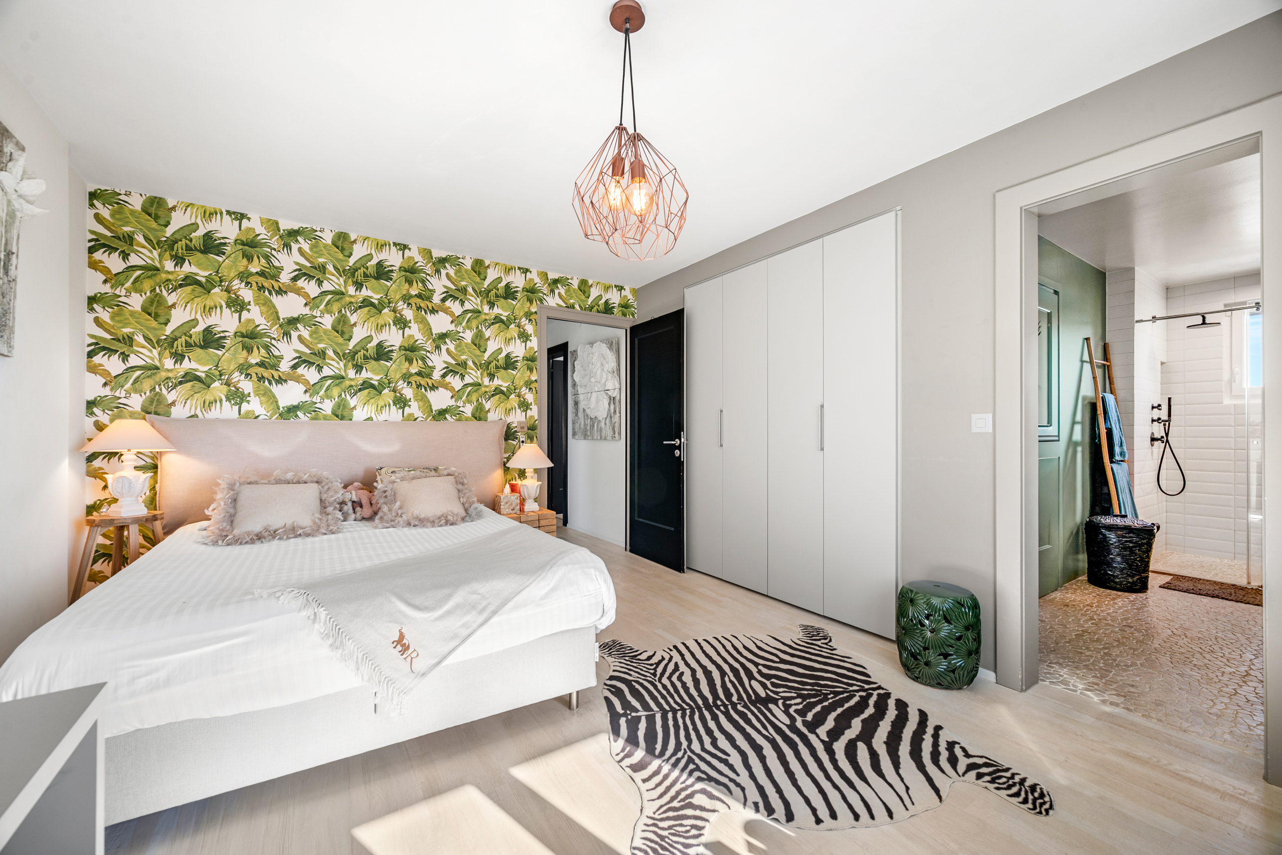 La suite parentale dispose d'un spacieux double dressing, d'une grande salle de bains et profite d'un accès sur la terrasse avec vue.