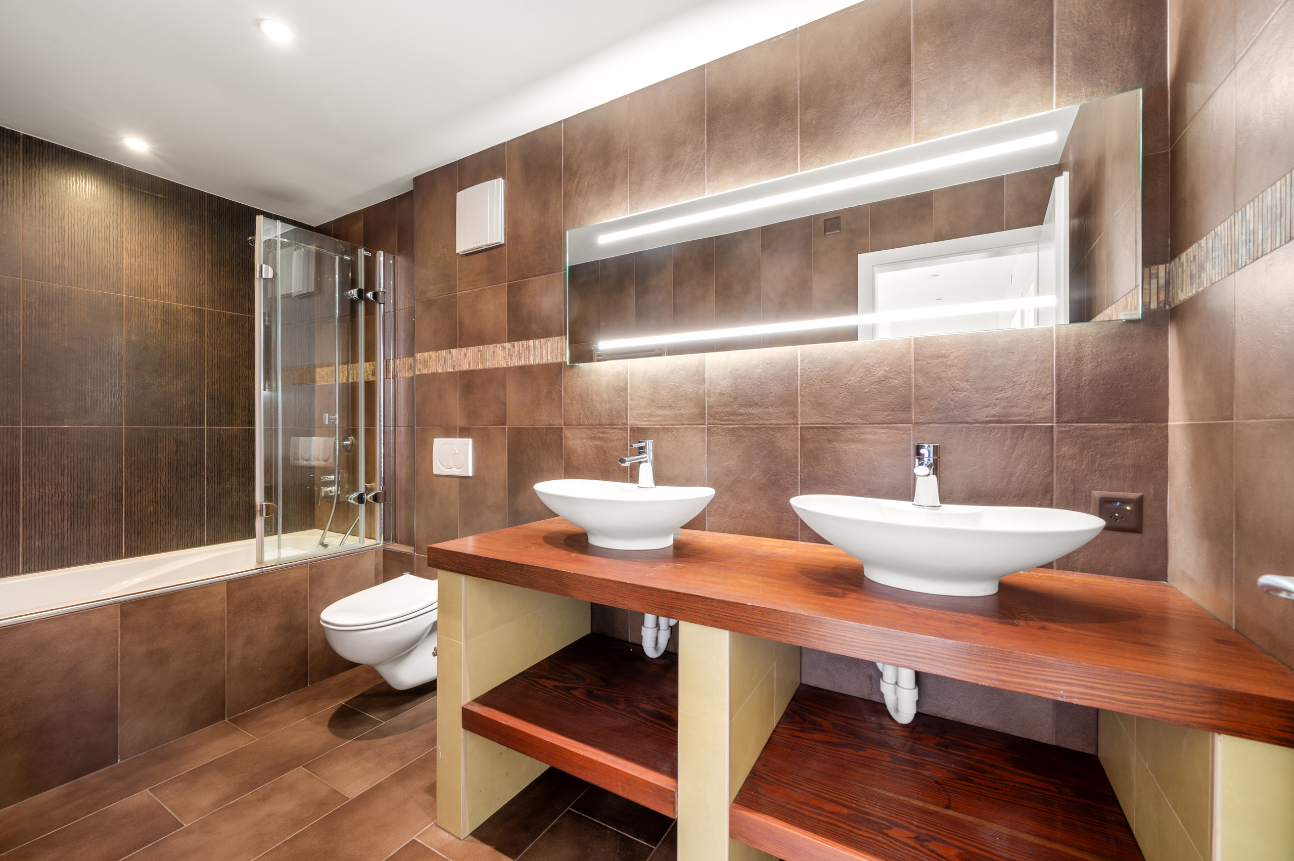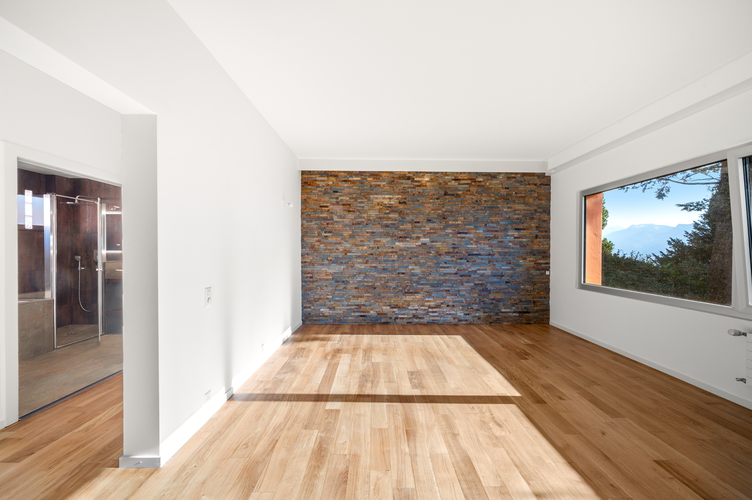 une salle de bain, une deuxième suite avec salle de bain privative, ainsi qu’une grande buanderie, une cave, un local technique et une cave à vin/carnotzet.