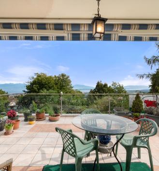 Situated in the sought-after heights of Arzier-Le Muids, this elegant 320 sqm detached house combines family comfort, generous living space and exceptional views. Surrounded by 1,169 sqm of landscaped grounds, it offers a rare quality of life between lake and mountains. As soon as you enter, you will be seduced by the spacious, light-filled, south-east-facing living area, comprising a lounge with fireplace, a convivial dining room and a fully fitted and equipped open-plan kitchen with pantry. The whole opens onto a panoramic terrace with uninterrupted views of Lake Geneva and Mont Blanc. Two beautiful bedrooms, a study area and a bathroom complete this level. Upstairs, a superb master suite with bathroom, balcony and attic storage offers a warm, intimate atmosphere. The lower ground floor features a basement with a separate living area ideal for family, guests or staff, including a lounge, open-plan kitchen, three bedrooms and three