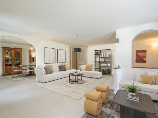 Located in a peaceful setting in the charming village of Gingins, come and discover this elegant 9.5-room architect-designed villa with its superb landscaped garden and swimming pool, offering an intimate family living environment just a few minutes from Nyon and close to Geneva. Ideal for families, this villa benefits from an unbeatable location, while offering a calm and intimate living environment. With around 250 sqm of living space, it features a large, bright living room with fireplace, a dining room opening onto a first terrace, a separate fitted kitchen, as well as a first large bedroom with dressing room also opening onto another terrace, an office, a bathroom, and 2 other rooms that could be used as a 2nd office or bedroom on the first floor. Upstairs, you'll enjoy three additional bedrooms, one with terrace, a bathroom and attic space. The basement offers storage and leisure space,