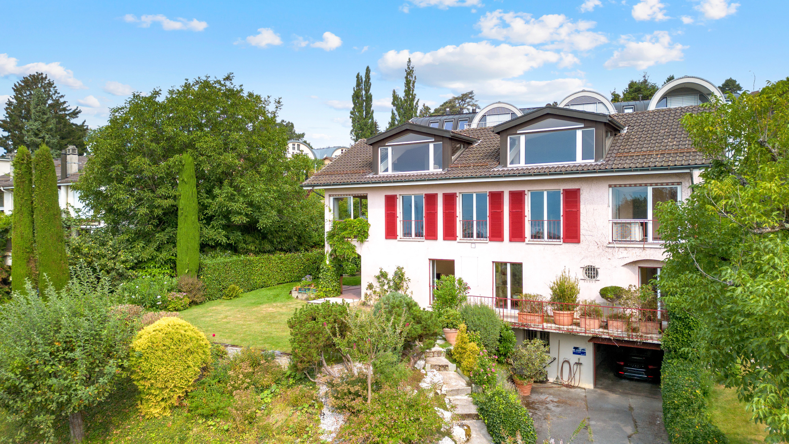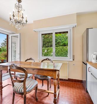 Située dans un quartier recherché de Pully, cette maison individuelle bénéficie d’un environnement verdoyant, à l’abri des nuisances tout en restant à quelques minutes seulement de l’ensemble des commodités Lausannoises. Construite en 1965, elle séduit par de beaux volumes et bénéficie d’une exposition plein sud offrant un ensoleillement généreux tout au long de la journée. Établie sur une parcelle de près de 1’000 m², elle profite d’une belle vue sur le lac depuis les étages et développe environ 280 m² habitables pour un total de 410 m² utiles, avec un sous-sol entièrement excavé à réaménager. La distribution se prête parfaitement à une grande famille, avec de généreux espaces de vie et de réception, une cuisine fermée donnant accès à l’espace barbecue, quatre chambres, trois salles de bains, un bureau et 2 vérandas. Le sous-sol réunit les locaux techniques, les caves, un atelier et une buanderie, complétés par un