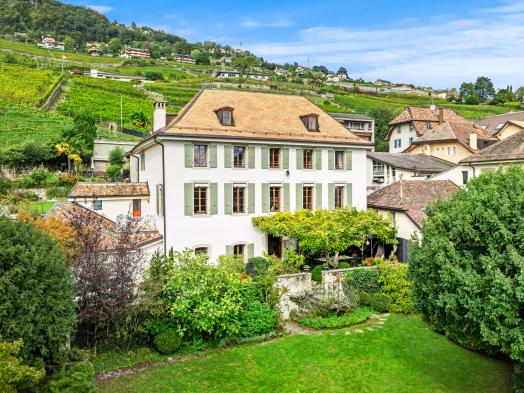 Cette magnifique propriété historique du 18ème siècle est située en plein centre du village de Corseaux en position dominante offrant ainsi une superbe vue sur le lac et les Alpes. Sa situation est idéale à proximité des transports, des commerces et des écoles internationales. Entourée d'une parcelle de 1'107 m2 avec un jardin verdoyant et bien arboré, cette propriété propose également une grande terrasse ombragée orientée plein sud et bénéficiant d'une magnifique vue sur le lac. Un terrain de pétanque, une serre, un pressoir ornemental et une fontaine agrémentent ce petit coin de paradis. La propriété offre 340 m2 habitable, de très vastes volumes, des matériaux d'origine et nobles, une alliance parfaite de modernisme et d'authenticité. Elle comprend quatre chambres à coucher, deux salles de bains, des grandes salles de réception agrémentées de jolis parquets, des cheminées anciennes et de belles hauteurs de plafonds. Les